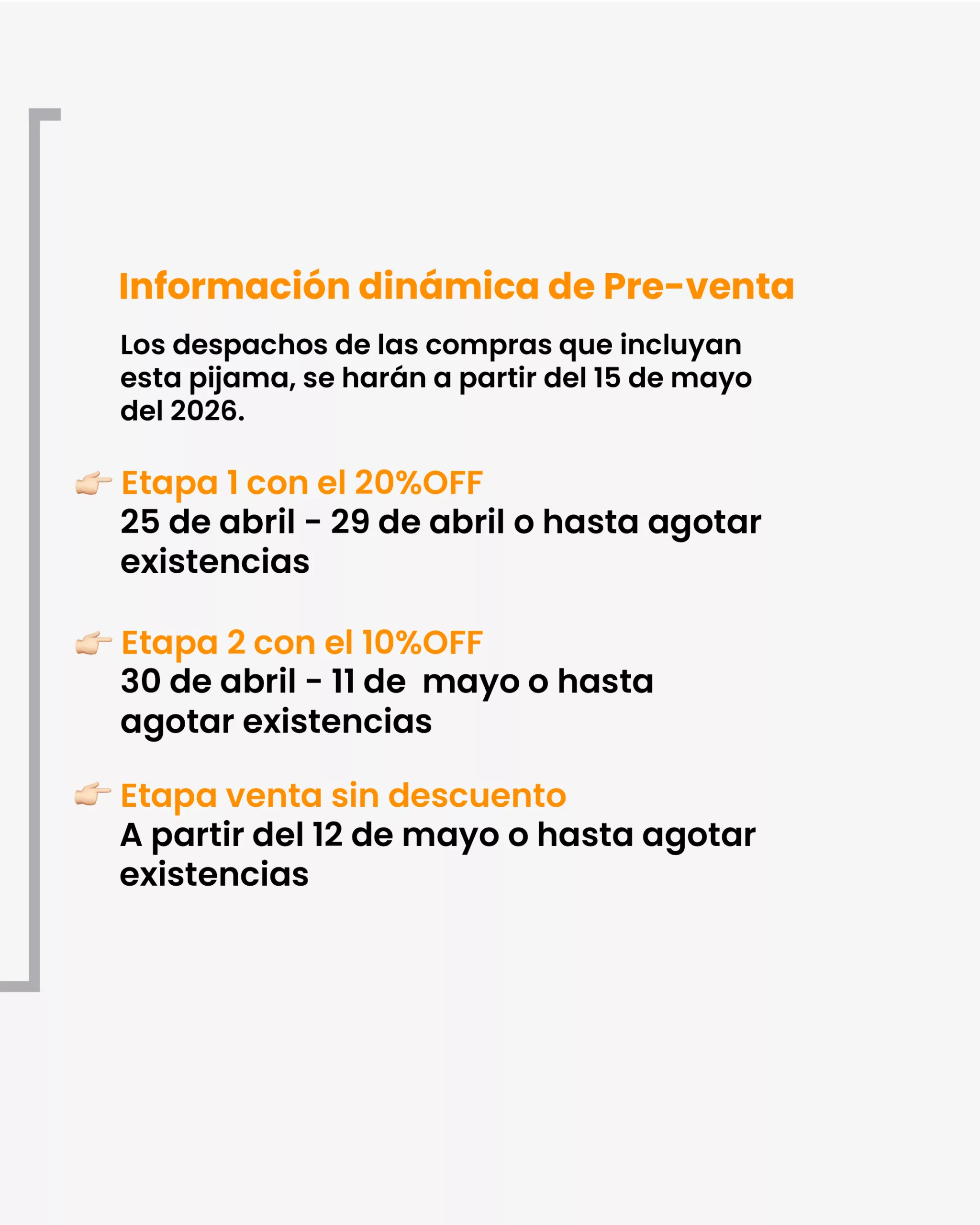 Pijama en PRE-VENTA con despacho a partir del 15 de mayo. Las fechas de pre-venta y detalles se encuentran en la segunda imagen.